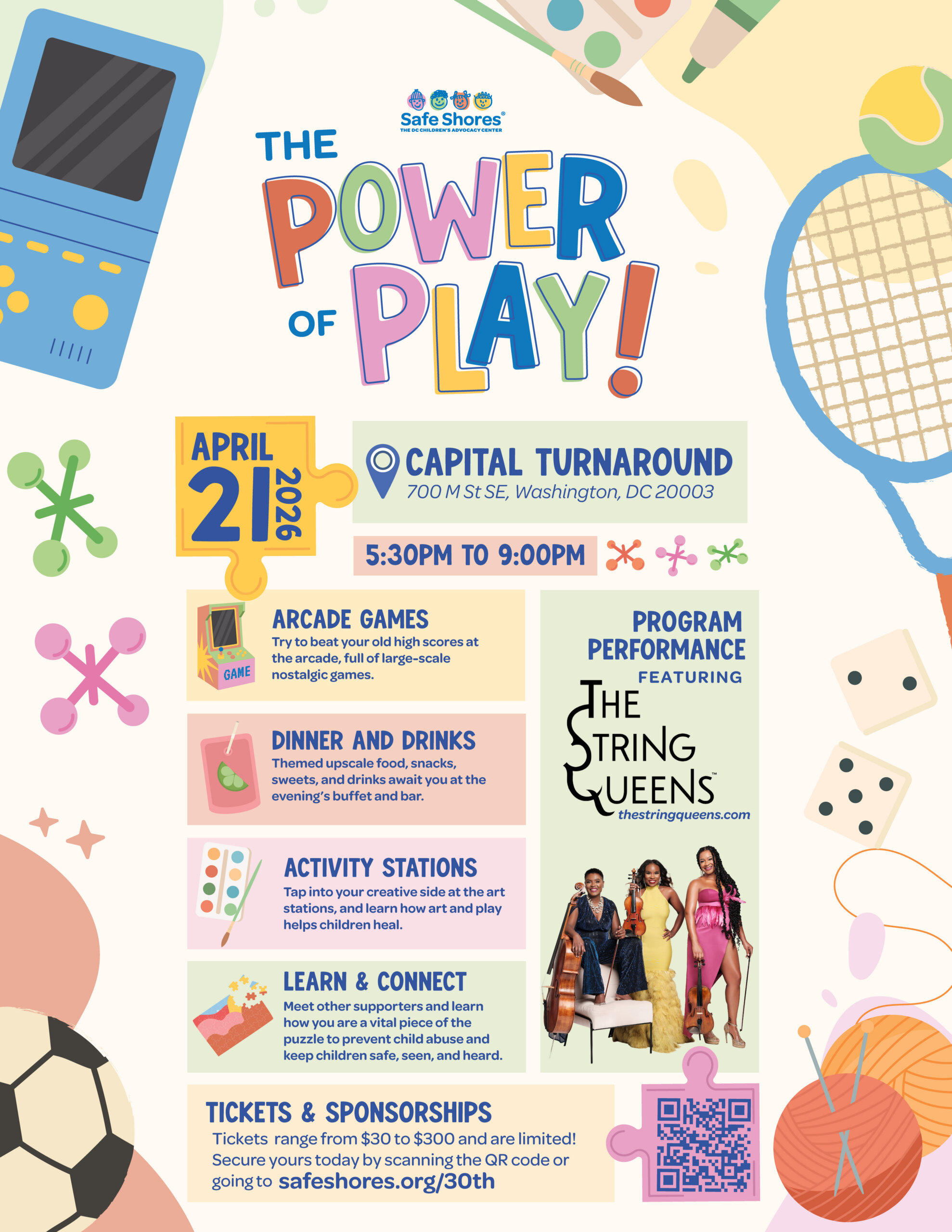 On April 21, join me for The Power of Play! @SafeShoresDC ‘s 30th Anniversary Event, featuring the musical highlight of the evening, a performance by @TheStringQueens!
