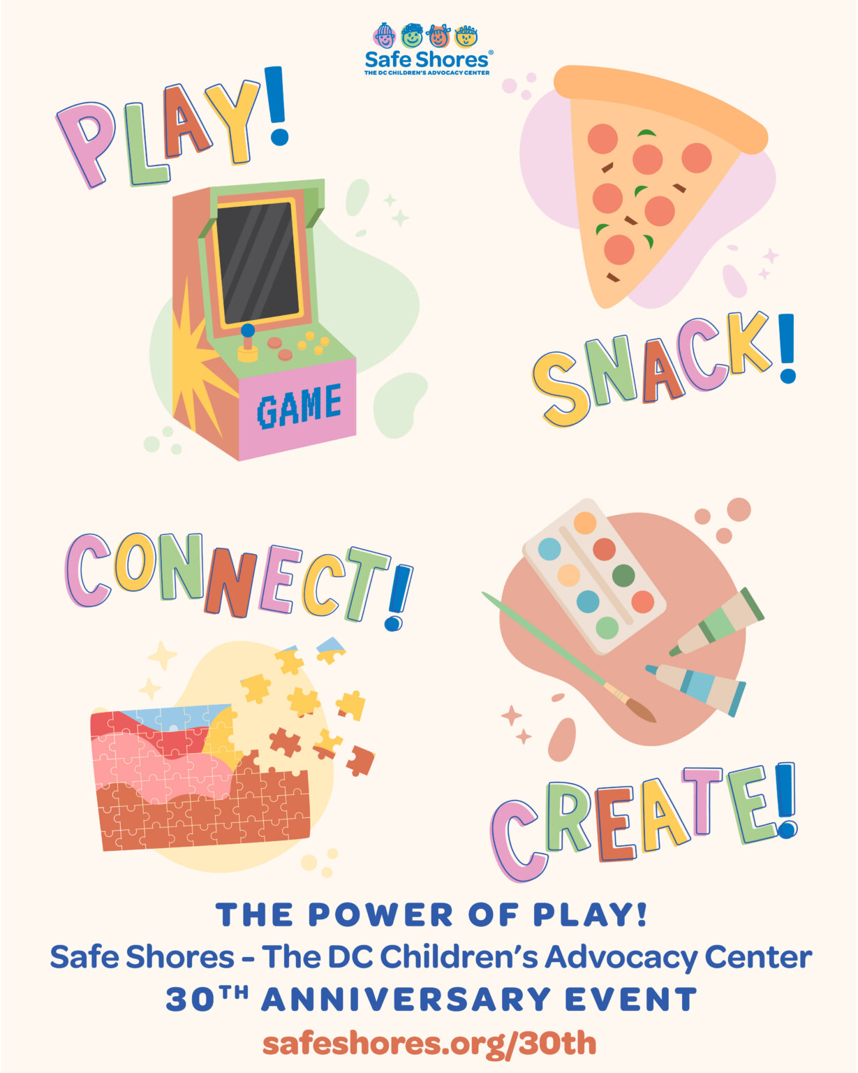 We are honoring Safe Shores’ 30th anniversary with a unique event: The Power of Play!