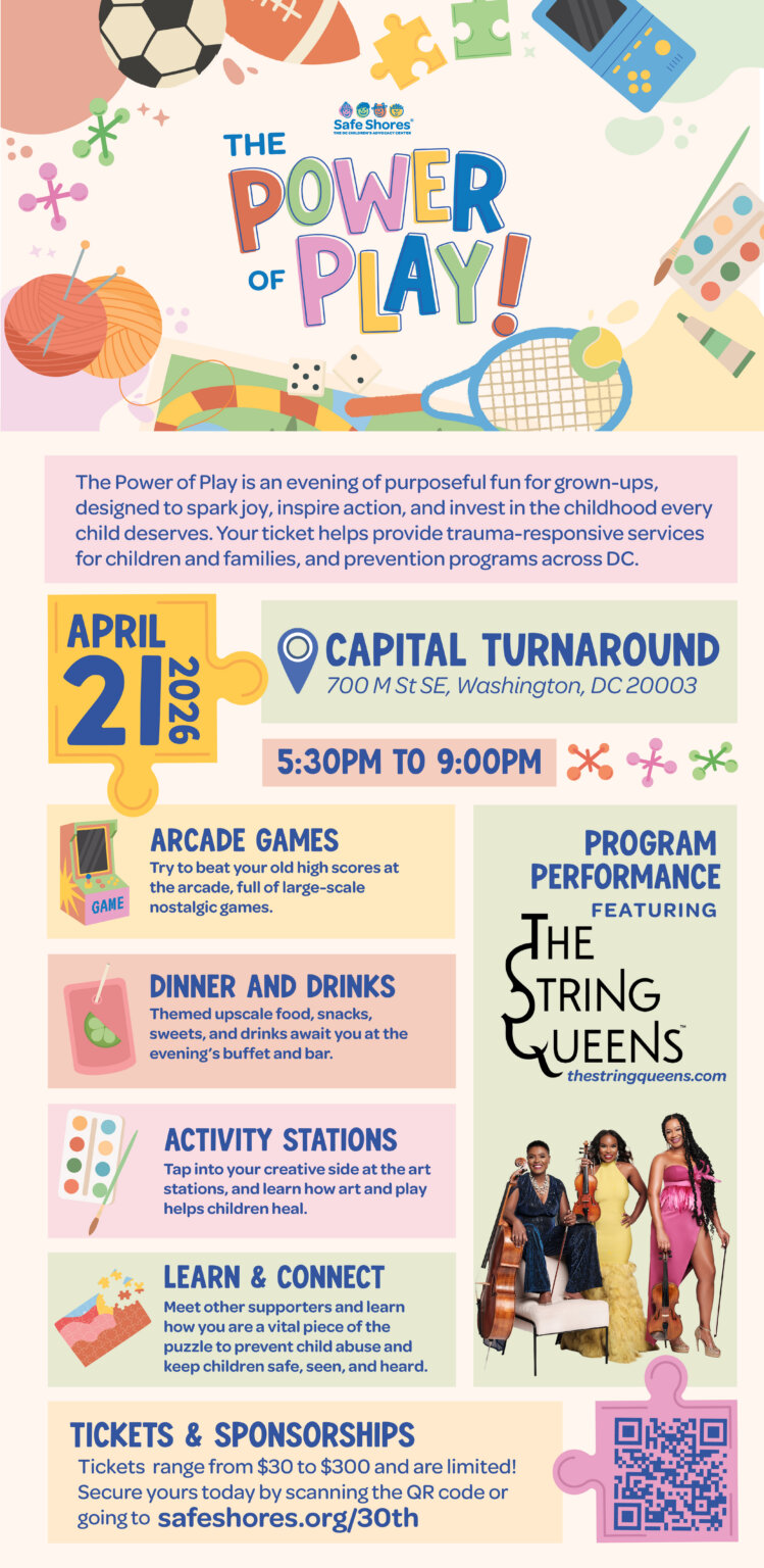 Event Name: The Power of Play! Safe Shores – The DC Children’s Advocacy Center’s 30th Anniversary Event