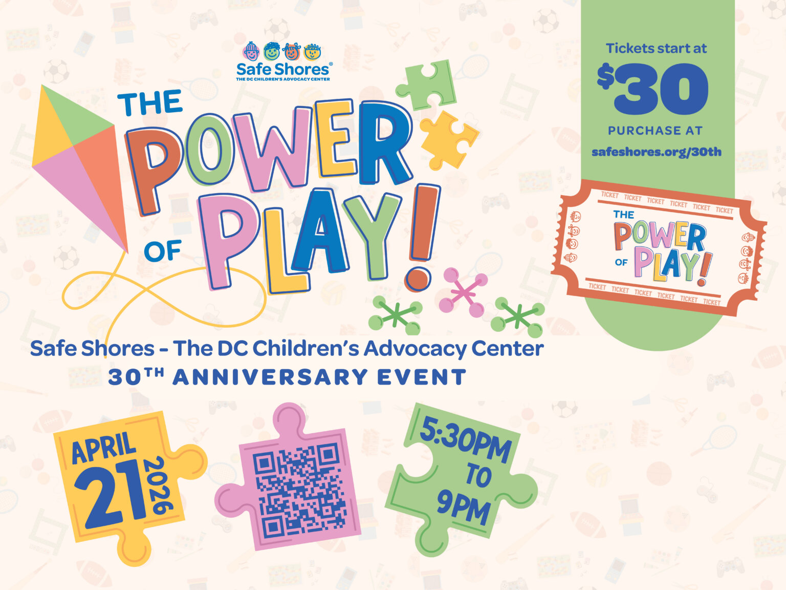 For over 30 years, Safe Shores – The DC Children’s Advocacy Center, where I work, has helped children who have experienced abuse in DC heal. To honor the anniversary, we are putting on an event like no other: The Power of Play!