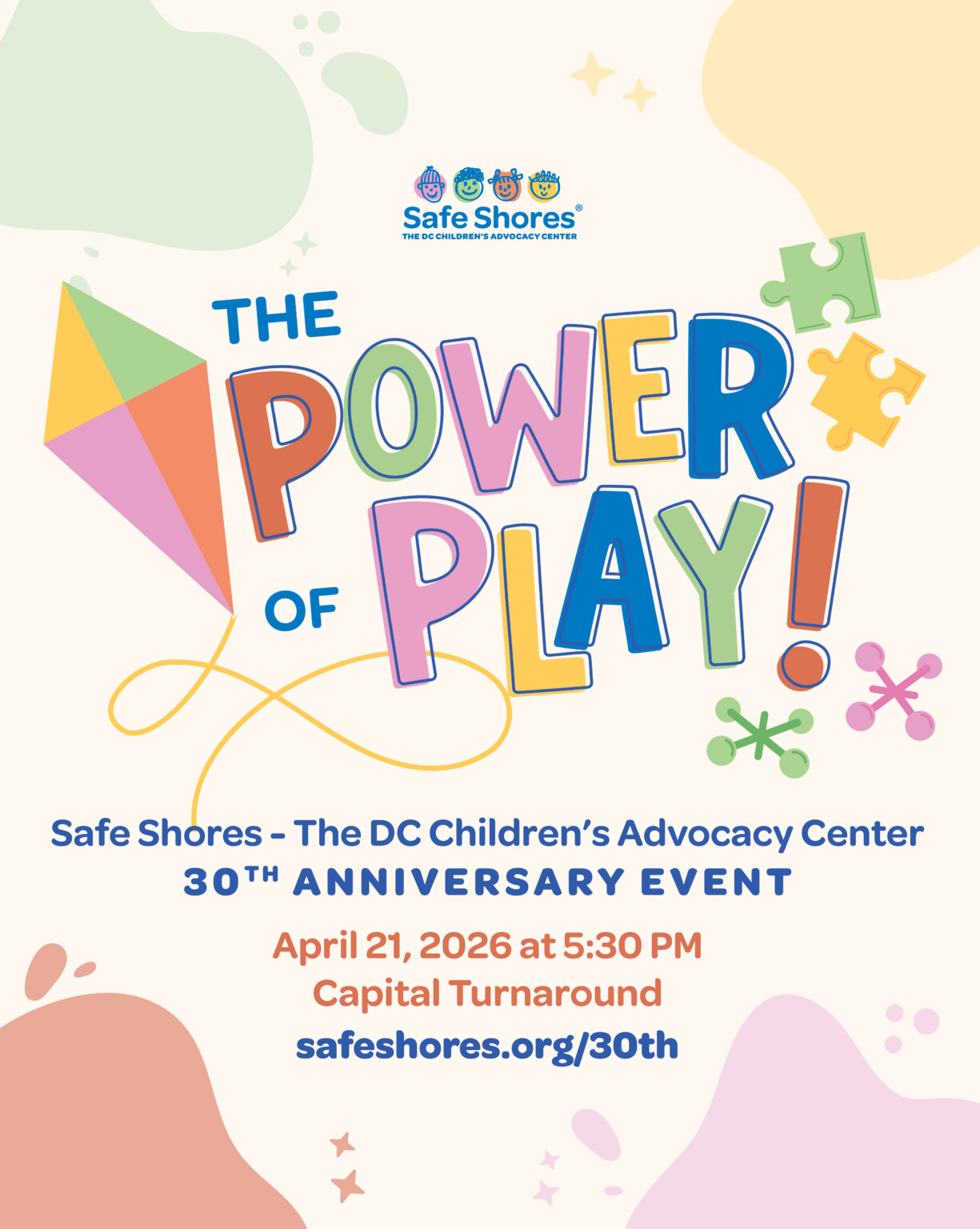 As you know, I work for Safe Shores—The DC Children’s Advocacy Center, a nonprofit that provides child-centered services and support for children affected by abuse in DC. This year, Safe Shores is commemorating a powerful milestone: 30 years of keeping children safe, seen, and heard.